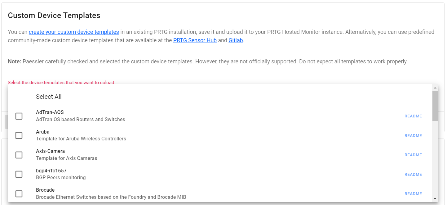 Here you can upload custom device templates and custom files.